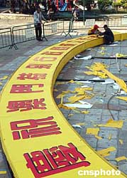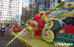 工人正在澳門(mén)佑漢公園趕制喜慶牌匾,為慶祝澳門(mén)特別行政區(qū)成立五周年,十八日澳門(mén)街坊總會(huì)將在此地舉辦“金蓮?fù)缕G齊鼓舞,彩燈璀璨慶回歸”系列大型慶;顒(dòng)。作者:梁永強(qiáng)