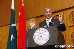 圖:巴基斯坦總理阿齊茲在清華大學演講