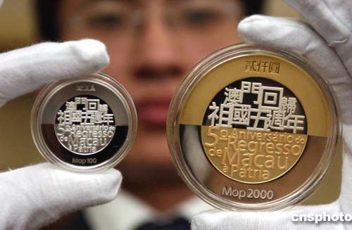 ·澳門12月發行回歸5周年紀念幣 9月起可預訂(圖) (2004-06-11)