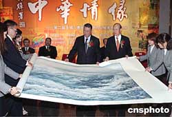 澳門特區行政長官何厚鏵在開幕儀式上接受贈畫。作者:宗金柱