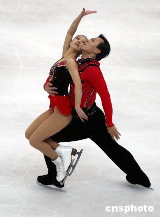 中國“雙人滑二號選手”龐清/佟健以古典韻味濃重的《梁!穵Z取季軍。俄羅斯新生代組合奧伯塔斯/斯拉夫諾夫和中國小將張丹/張昊分列第四和第五名。