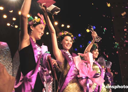 威寧整形杯首屆“人造美女”大賽十八日在北京舉行,來自全國的二十位“人造美女”進入決賽,最后馮倩(中)獲得冠軍、成莉莉(左)獲得季軍、亞軍由張爽獲得。作者:王麗南