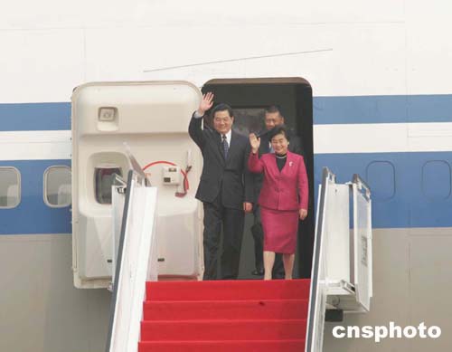 胡錦濤主席19日上午11時30分抵達澳門出席回歸五周年慶典。作者:宗金柱
