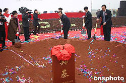 十二月十九日上午,總投資一億五千萬元的TCL成都數碼工業園在成都高新技術產業開發區正式破土動工,該集團高級副總裁呂忠麗(左二)及四川省政府秘書長李洪仁(中)等官員為該項目奠基。TCL成都數碼工業園是TCL與法國湯姆遜合資組建全球最大彩電企業TTE公司后的首個投資項目,也是TCL在中西部最大的一個投資項目。至此,TCL集團初步完成了彩電產業在中國東南西北中的戰略布局。作者:楊杰