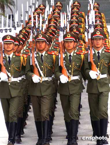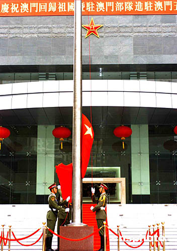 解放軍駐澳門部隊20日上午莊嚴舉行升旗儀式,慶祝澳門回歸祖國五周年。作者:宋吉河