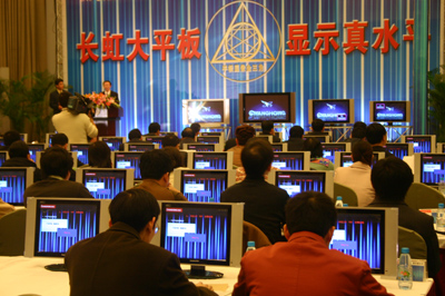 在此次發布會上,國家廣播電視產品監督檢驗檢測中心發布《長虹平板電視綜合檢測報告》指出,長虹平板電視在清晰度、亮度、色度、對比度等綜合性能指標位列行業前茅。這表明,長虹“平板顯像金三角”所擁有的專有技術代表著平板顯像技術的發展趨勢。