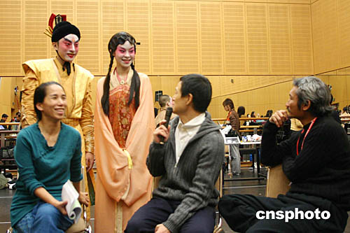 集合京劇、昆曲、臺灣原住民樂舞的跨年大型歌舞戲曲《暴風雨》,將于十二月三十日至二零零五年在臺北連演四天。該劇取材自莎士比亞戲劇,由香港著名導演徐克(左一)、臺灣“反派大師”吳興國(左二)、獲奧斯卡金像獎的臺灣造型師葉錦添聯袂奉獻。圖為二十一日該劇媒體見面會的情景。