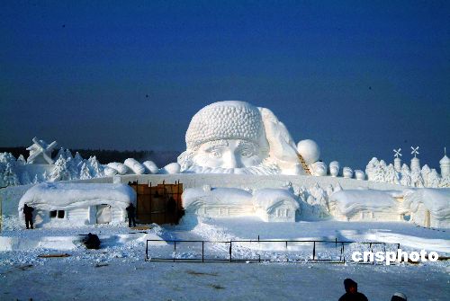 2004年12月22日,長(zhǎng)春凈月潭國(guó)家森林公園的巨型“圣誕老人”。當(dāng)日,經(jīng)過長(zhǎng)春凈月潭國(guó)家森林公園的上百名工作人員的日夜忙碌、35位哈爾濱專業(yè)冰雕師的精雕細(xì)琢,世界最大單體雪雕作品--“圣誕老人”在吉林長(zhǎng)春凈月潭國(guó)家森林公園冰雪樂園全部竣工。據(jù)悉,該“圣誕老人”現(xiàn)體量長(zhǎng)80米、高17米、厚25米,用雪量7000立方米,工程量和體積為世界之最。24日,“2005屆中國(guó)長(zhǎng)春冰雪旅游節(jié)暨凈月潭瓦薩國(guó)際越野滑雪節(jié)”將于長(zhǎng)春開幕。作者:樊甲山