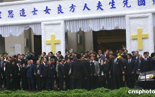 儀式于上午八時舉行,堂內(nèi)掛滿白紗帷幕和白色鮮花,場面肅穆。與蔣家關(guān)系密切的牧師周聯(lián)華現(xiàn)場引用舊約圣經(jīng)篇章“才德的婦人”誦揚蔣方良一生溫良恭儉讓美德。