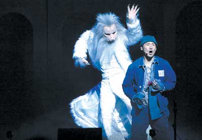 陳:它有那么多歌,跟音樂有很大的關系,對白也不是太多,都是用歌來交代情節(jié),它也不是音樂會,因為它是有劇情的,我覺得它就是音樂劇。我們不要全學國外,因為我們希望有雅俗共賞的音樂劇,讓一般觀眾不容易理解的不是我們心目中的理想。如果有人覺得這個不是音樂劇,他們可以自己做一個自己理想中的音樂劇,我們也會去看看有什么值得我們學習的。我們這個只是一個開始,我希望以后有更多不同類型的音樂劇來演。像我們這樣的,1997年時還是第一次做,之所以說創(chuàng)意音樂劇,就是沒有一個先例,自己比較寬松,想做什么就做什么,最重要的是觀眾覺得我們有誠意。