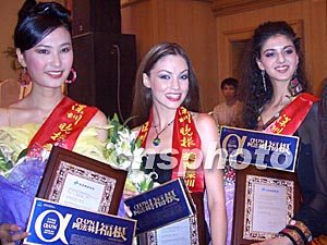 參加第十六屆世界模特小姐大賽的六十六位佳麗五月十五至十六日旋風(fēng)訪問深圳,展示迷人風(fēng)姿。圖為中國的馬力和波黑、希臘小姐被評為最具人氣獎(jiǎng)。作者:陳文