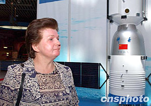 現(xiàn)年六十七歲的捷列什科娃雖年過花甲,但舉手投足間的迷人風(fēng)采依然不減當(dāng)年。她一邊興致勃勃地觀看“長征”運載火箭、“神舟”飛船等各種航天器模型,一邊親切地同身邊的小觀眾和記者們交談。她說,“中國航天可以說是取得了非常燦爛的成就”、“宇宙的條件對于男、女來說沒有區(qū)別,是完全一樣的”、“中國女性目前在各行各業(yè)表現(xiàn)都很突出,將來她們在宇航事業(yè)中會做得非常優(yōu)秀、非常棒”。