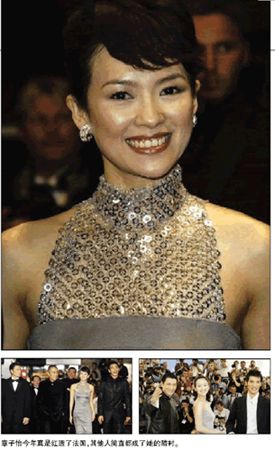 章子怡、劉德華和金城武在紅毯秀上的著裝是中國媒體關注的焦點。去年章子怡憑影片《紫蝴蝶》出席紅地毯,其明艷造型獲得高分評價,今年的穿戴與去年相比絲毫不遜———意大利著名服裝品牌Ferregamo今年繼續為章子怡贊助晚裝,而梵克雅寶的兩枚美鉆耳環和胸前的項鏈配以30年代上海灘風情的盤頭發式更顯高貴氣質。記者最感驚訝的是,紅毯秀上章子怡用英語接受了戛納官方電視臺主持人的采訪。(記者張文伯)