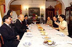 全國政協副主席、中共中央統戰部部長劉延東25日下午抵達香港,隨即到全國政協副主席霍英東家看望霍英東,與霍英東父子親切交談。作者:洪少葵
