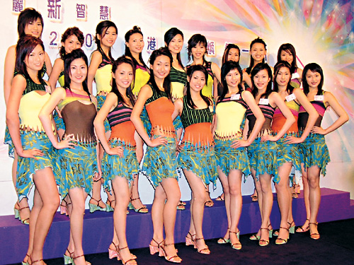 “二○○四年度香港小姐競選”候選佳麗將于本周末出發往東非肯尼亞拍攝外景,大會統籌經理何麗全與十八位佳麗出席昨日招待會。眾佳麗穿上貼身背心及迷你短裙,燕瘦環肥身型無所遁形。