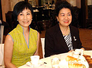 5月26日,香港著名藝人汪明荃盛裝在君悅酒店出席活動,與訪港的全國政協副主席、中共中央統戰部部長劉延東見面。作者:洪少葵