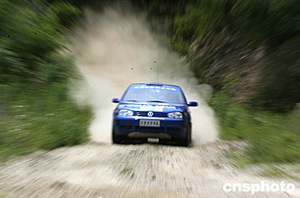 5月29日,2004年全國汽車拉力錦標賽“海淀駕校杯”北京拉力賽正式在北京鳳凰嶺拉開帷幕,眾多參賽車隊在崎嶇的賽道上競爭激烈。中新社記者:盛佳鵬