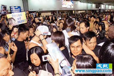 F3在大約6時抵達(dá),而朱孝天有工作在身稍后才到港。現(xiàn)場所見仔仔帶上口罩,帶病出席盛會。五百多Fans一見偶像立即蜂擁而上,保安由六人增至60人,F(xiàn)ans爭相上前握手和送花,場面一片混亂,更弄破一名攝影記者的鏡頭。期間吳建豪在人海中被人拍中頭部,使他十分愕然,在旁的暴龍加以安慰。F3離開機場后,F(xiàn)ans立即變成追蹤隊,在公路上追車時險象環(huán)生。此外,蔡依林昨晚在百忙中抽空到Dior掃貸,盡顯購物狂本色。