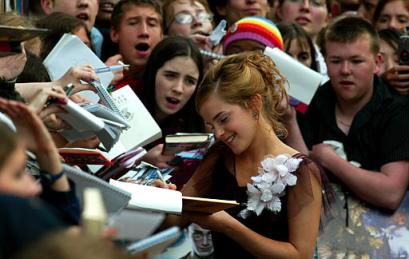 扮演哈利波特的丹尼爾在進(jìn)入影院之前為影迷們?cè)诤?bào)和照片上簽名。“真是壯觀呀,我好激動(dòng),比紐約首映式的規(guī)模大多了。”