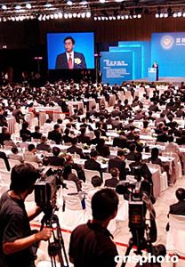 在香港會(huì)展中心進(jìn)行的「泛珠三角區(qū)域合作與發(fā)展論壇」會(huì)場(chǎng)。作者:洪少葵
