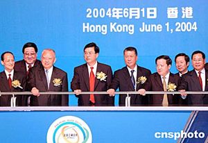 香港特區(qū)行政長(zhǎng)官董建華、廣東省委書記張德江、泛珠三角九個(gè)省、以及香港和澳門特區(qū)領(lǐng)導(dǎo)人主持開幕儀式。作者:洪少葵