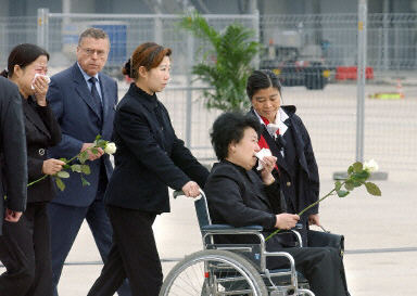 巴黎戴高樂機場候機樓設計師安德魯向遇難者獻花
