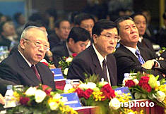 “泛珠江三角洲區域合作與發展論壇”二日移師澳門旅游塔會展中心舉行,中共中央政治局委員、廣東省委書記張德江、香港特區行政長官董建華、澳門特區行政長官何厚鏵等出席論壇。作者:梁永強