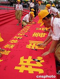 適逢民族英雄林則徐虎門硝煙一百六十五周年,福建省和廣東省禁毒辦聯(lián)袂在虎門主辦閩粵港澳臺青少年禁毒夏令營活動。圖為閩粵港澳臺青少年學生集體簽名,對毒品說“不”。作者:楊伏山