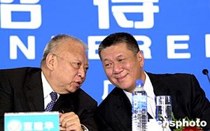 香港特首董建華和澳門(mén)特首何厚鏵出席中外記者招待會(huì)。作者:陳文