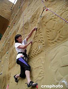 二零零四中國廣東懷集國際攀巖邀請賽六月六日下午在廣東懷集“國家攀巖訓練基地”降下帷幕。圖為中國選手在比賽中。作者:黃耀輝