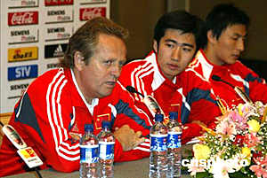 二零零六年世界杯足球賽亞洲區預賽中國隊對馬來西亞隊的比賽將于六月九日晚在天津舉行,中國足球隊主教練阿里漢六月八日在新聞發布會上表示,中國與馬來西亞隊的比賽將是一場艱苦的比賽,隊員們已經做好了準備。中新社記者:毛建軍