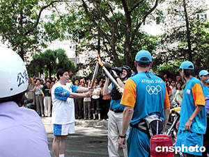 中國射擊老將王義夫傳遞雅典奧運火炬
