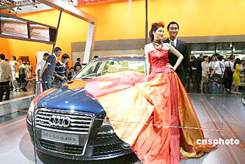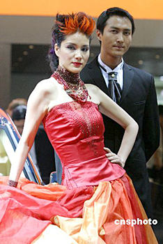 6月9日是2004年北京國際汽車展覽會開幕前一天的新聞日,一批名模出現在名車展臺,在各大汽車廠商推出的精彩節目中亮相。魯谷 攝