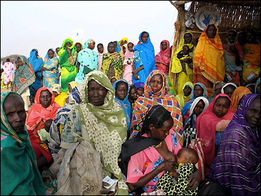 中新網(wǎng)6月14日電 在蘇丹達(dá)爾福爾地區(qū)的一座難民營(yíng),難民們正在等待接受救濟(jì)食品的發(fā)放。(春風(fēng))