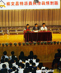 中央人民政府外交部駐香港特別行政區(qū)特派員公署特派員楊文昌,六月十五日出席香港福建中學(xué)舉行的“楊文昌特派員與你真情對(duì)話”活動(dòng)。中新社記者:錢(qián)興強(qiáng)