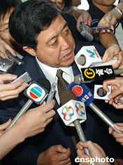 中央人民政府外交部駐香港特別行政區(qū)特派員公署特派員楊文昌,六月十五日在香港福建中學(xué)與學(xué)生對(duì)話,并發(fā)表演講。圖為楊文昌在活動(dòng)上接受香港傳媒采訪。中新社記者:錢(qián)興強(qiáng)