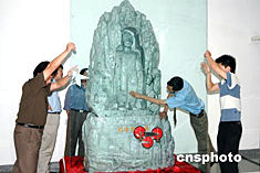 圖:翡翠玉雕"巴米揚大佛"在蘇州亮相