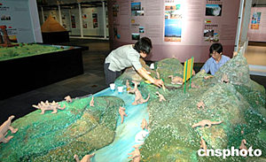 第28屆世界遺產大會六月二十八日將在蘇州舉行,以全球754個遺產項目為展示內容的世界遺產展布展六月十六日結束。展館共分三部分:中國館、世界館和三部委展區,其中世界館中所有的模型都由學生親手制作。圖為世界館中的加拿大艾伯塔省恐龍公園模型。作者:蔣振江