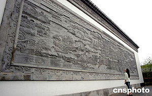 磚雕巨作《錦繡蘇州》于第二十八屆世界文化遺產大會開幕前在蘇州主會場廣場落成,此磚雕是二十名磚雕技工用二百九十一塊金磚歷時三個月完成的。作者:蔣振江