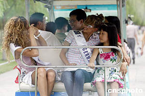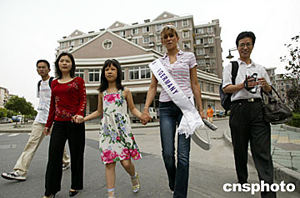 6月18日,2004年國際旅游小姐冠軍總決賽“生活在中國”主題活動在杭州舉行,參賽佳麗各自進入杭州市民家庭,體驗中國城市生活,不少家庭都陪同異國客人來到西湖游覽。中新社記者:盛佳鵬