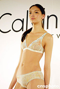 六月十九日,Calvin Klein在滬舉行二零零四年新款內衣秀,尤其是今季最流行的絢彩全透明內衣及底褲,十分惹眼。作者:湯彥俊