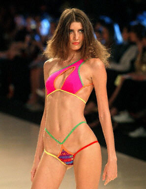 6月21日,在巴西圣保羅時裝周上,模特們展示了設計師Amir Slama設計的性感比基尼。