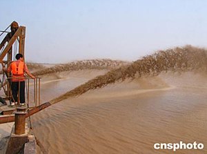 中新網(wǎng)6月22日電 黃河第三次調(diào)水調(diào)沙試驗人造洪峰預(yù)計于今天中午到達(dá)黃河下游山東擾沙點(diǎn),屆時,山東段的人工擾沙試驗將隨即展開。