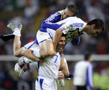 希臘隊則創造了首次進軍國際大賽四強的最好成績,成為本屆比賽最大的“黑馬”。他們先后擊敗葡萄牙、法國,戰平西班牙,闖入四強讓人心服口服。在半決賽中,他們將對陣捷克隊和丹麥隊比賽的勝者。