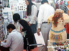 正在香港會展中心舉辦的“2004亞洲時尚首飾及配飾展”,周六吸引眾多參觀者,是次展會有400逾家來自20個國家及地區(qū)的參展商,展示最新時尚首飾及配飾。作者:錢興強