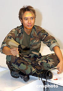 影星鄭伊健6月30日在香港為港產電影《六壯士》拍攝宣傳海報造型。作者:鄧慶樂