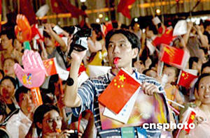 七月一日晚,廣州申辦2010年亞運會獲得成功的消息傳到廣州,廣州全城沸騰,不少市民帶著攝錄機記錄了廣州歷史上這一難忘的時刻。作者:羅仰明