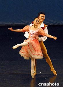 七月二日晚,第三屆上海國際芭蕾舞比賽頒獎典禮在上海大劇院舉行,中國小選手李茗獲女子少年組金獎。本次大賽云集十八個國家八十三位參賽選手。圖為李茗與同伴表演雙人舞《吉賽爾》。作者:潘索菲