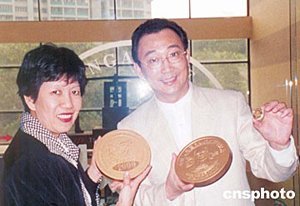 香港金幣總公司近日發(fā)行黃金白銀加鉆石紀(jì)念幣,紀(jì)念鄧小平誕辰一百周年。圖為該公司主席凌鋒和新加坡造幣局總裁莊碧蓮共同研究造幣方案。作者:中新社