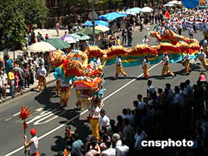 二零零四年七月四日是美國獨立二百二十八周年。七月三日中午,數(shù)千華人聚集在紐約曼哈頓中國城舉行游行活動,慶祝美國國慶。作者:陳建
